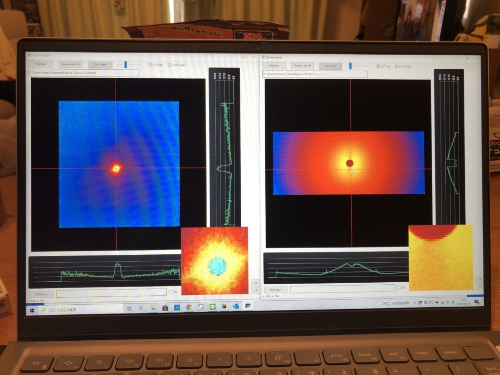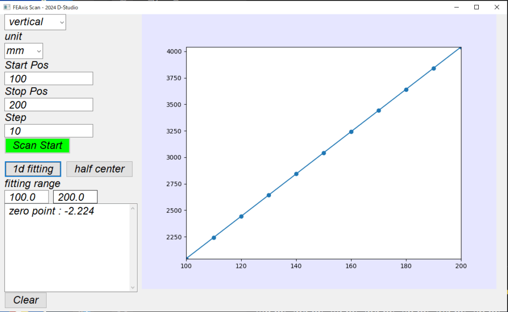 結果を1Dフィッティングで0位置出し、半値でのセンター出しなども行えるようにしてます。